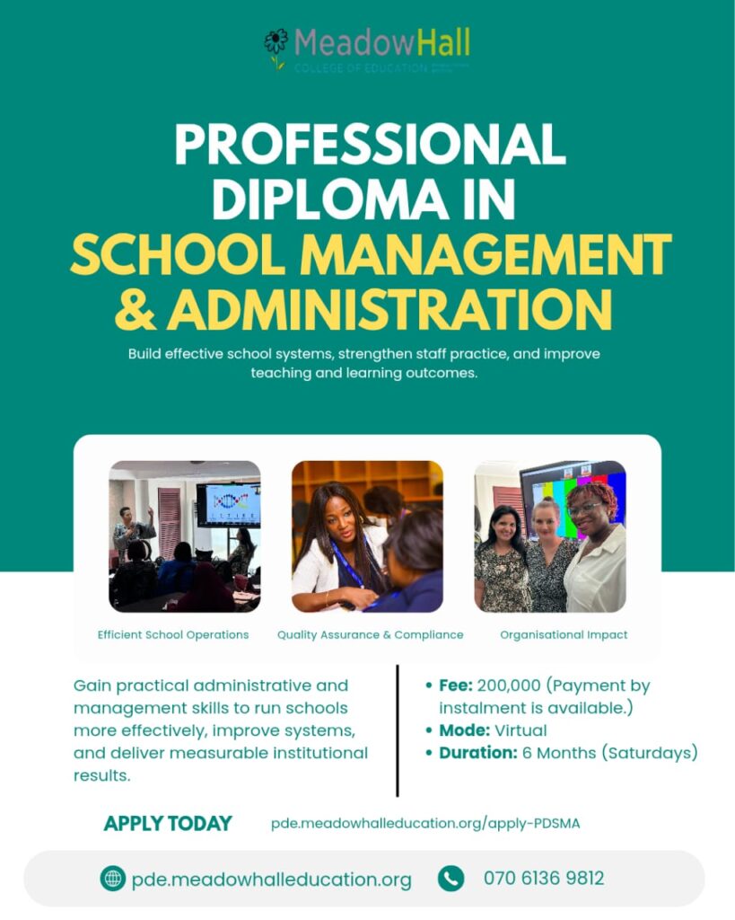 The Professional Diploma in School Management and Administration is a practical, school-focused programme designed to strengthen both school management capability, administrative competence, and instructional leadership practice.